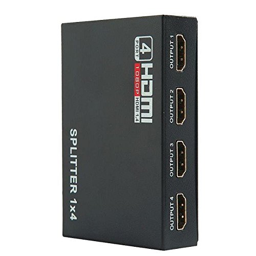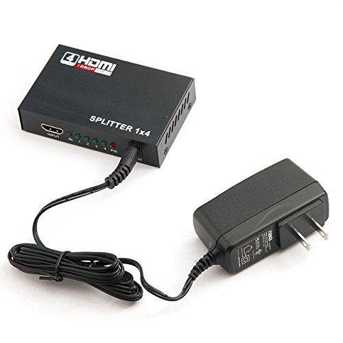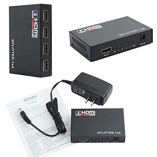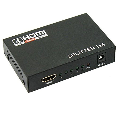 JahyShow® 1 in 4 out HDMI Splitter Amplifier Repeater Full HD 1080P 1X4 Port Box Hub with US Adapter v1.4 Powered Certified for 3D Support
