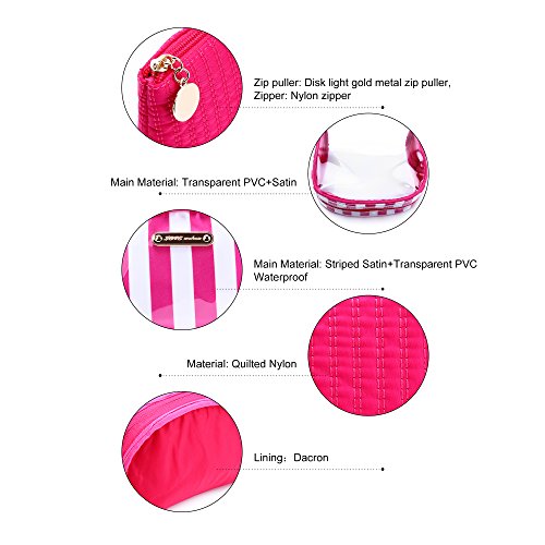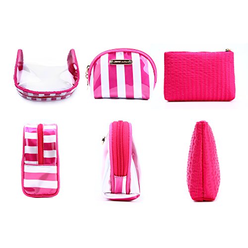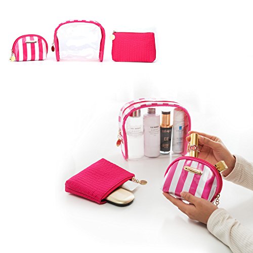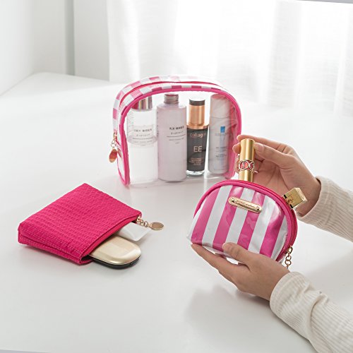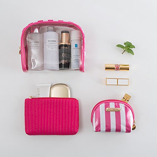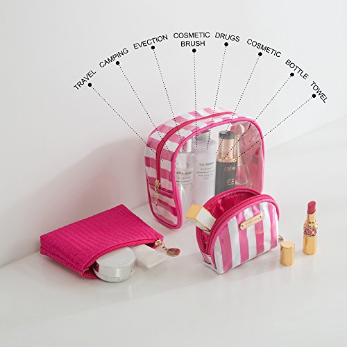 Cute Makeup Bag,Wuhua Storage/Cosmetic Bags 3pcs Accessories,Multifunction Toiletry Pouch with Zipper, Clear Pink Pretty for Girl