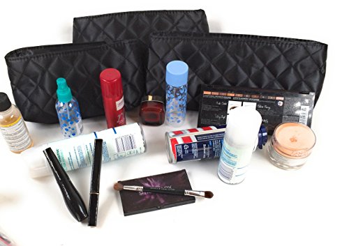 Black Satin Makeup Bags by Models-on-the-Go Set of Three