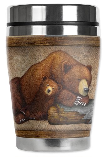 Mugzie Sleeping Bear "Mini" Travel Mug with Insulated Wetsuit Cover, 12 oz, Black