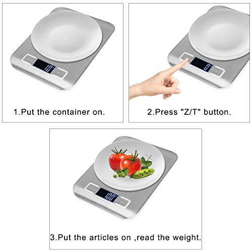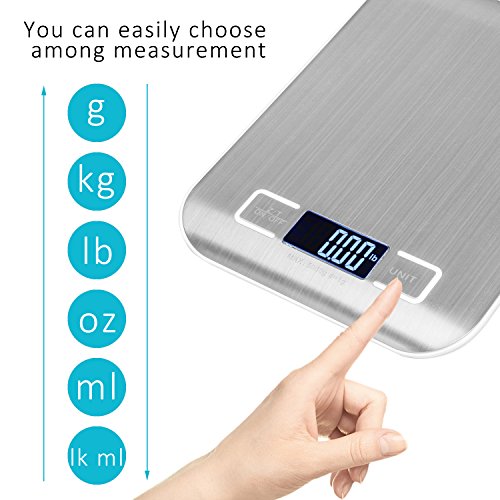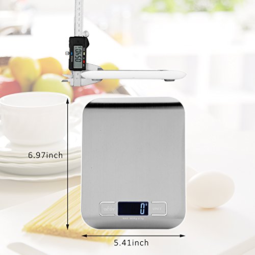 - Brushed SS Platform : Stainless steel design of our kitchen scale will effectively prevent fingerprint ,water permeation ,the lifespan of this scale will relevantly prolonged .Calm and delicate metallic luster can give you a sense of visual enjoyment and make your scaling life more colorful .