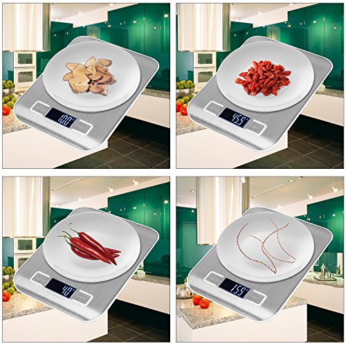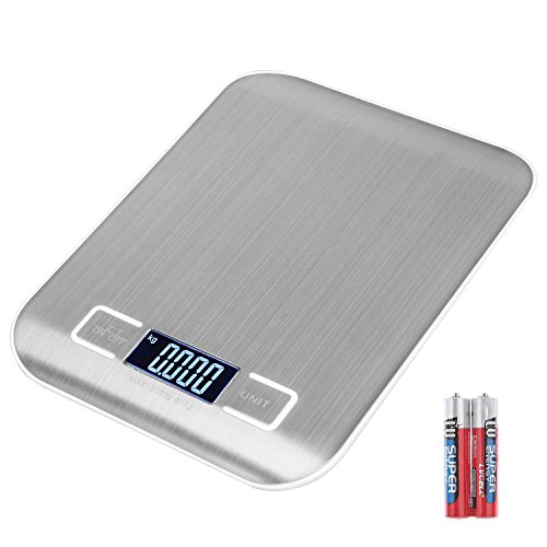 LULUYUKI Mini Anti-fingerprint Stainless Steel Digital Kitchen Scale 11 lb/5kg ,High-precision Food Scale for Baking ,Meal ,Herb ,Jewelry Scale ,Silver with Batteries Included