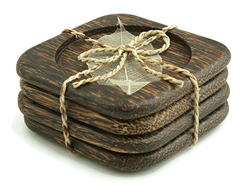 IYARA CRAFT Wooden Coasters for Drinks Tea Cups Saucers,Table topper decoration set (Square Rounded (Palm wood))