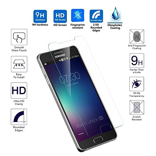 -. Feature : High Quality Premium Tempered Glass Screen Protector for Samsung Galaxy Note 5. / Real Tempered Glass Protector, Bubble Free, Ultra Clear for 98% transparency, Anti-FingerP.R.Int and Oleophobic Coated, Ultra Slim Thickness / The surface of the tempered glass has a hardness of 8-9H, much stronger than a regular screen protector film. Even objects such as knives and keys will not scratch the tempered glass. / The Premium Tempered Glass has an oleophobic coating that prevents fingerP.R.Ints and other contaminants. Sensitive Touch (you will not feel the difference) / The tempered glass screen protector has a strong adhesive that makes installation easy and attaches the film firmly so as to not affect the touch screen's sensitivity. Anti-Shatter Film If broken, the Tempered Glass breaks into small pieces that are not sharp, making it safer than other glass products.