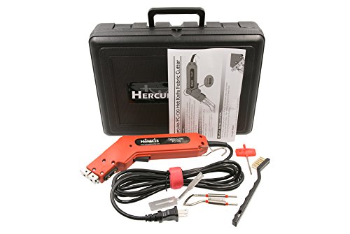 Hot knife fabric cutter kit includes Hercules FC-120 heat cutter, type-R blade, cutter foot, hard plastic case, and cleaning brush
