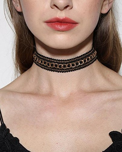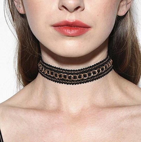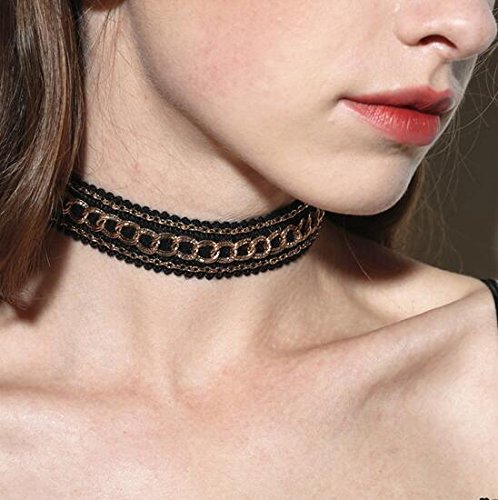 Venusvi Fashion Black Choker Necklace for Girls and Women with alloy chain