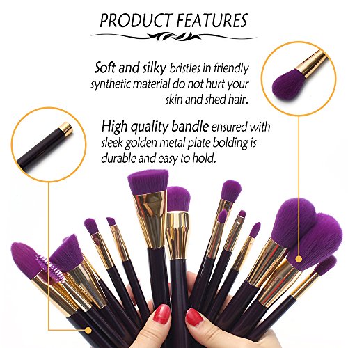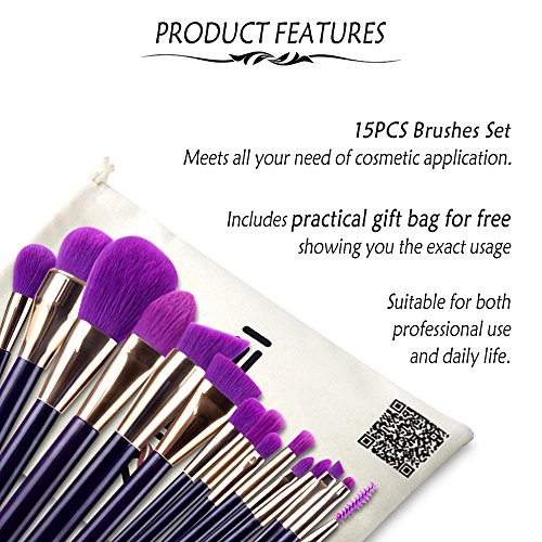Neverland Beauty 15pcs Make Up Sets Soft Powder Foundation Eyeshadow Eyeliner Lip Makeup Brushes Dark Purple