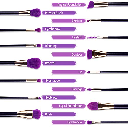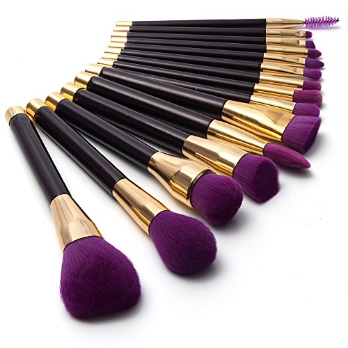 - 15pcs make-up brushes for foundation, blush, powder, bronzer, eyeshadow, eyeliner, eyebrow, lip, concealer, highlighter and blending.
