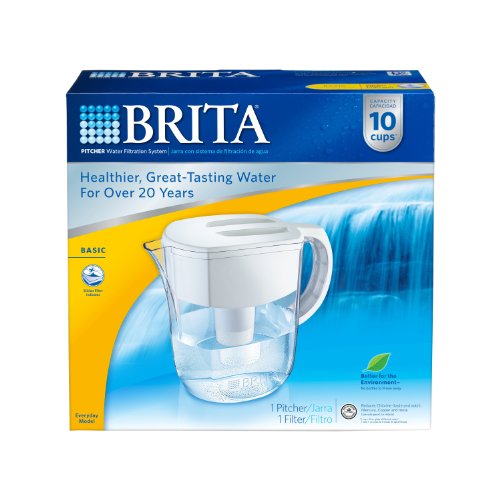 - Feature : Large basic 10 cup water filtration pitcher with 1 filter / 1 water filter can replace 300 standard 16.9 ounce water bottles / Reduces chlorine taste and odor, zinc taste, copper, mercury and cadmium, often found in tap water / BPA-free pitcher in clean white color and standard oval design / Sticker filter indicator for tracking when to change the water filter