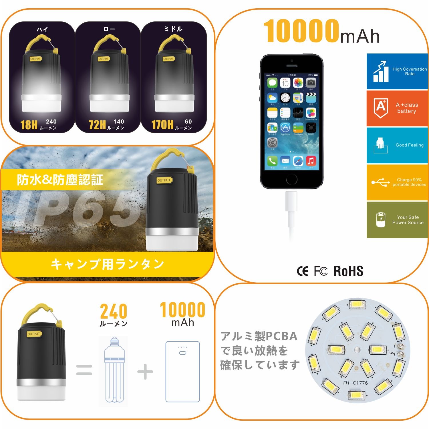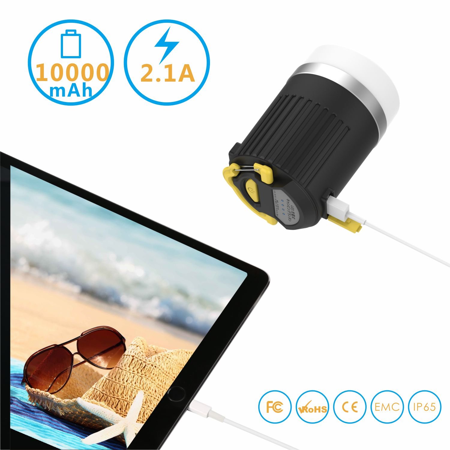 Bicosy 240 lumen rechargeable camp light 10000 mAh mobile battery