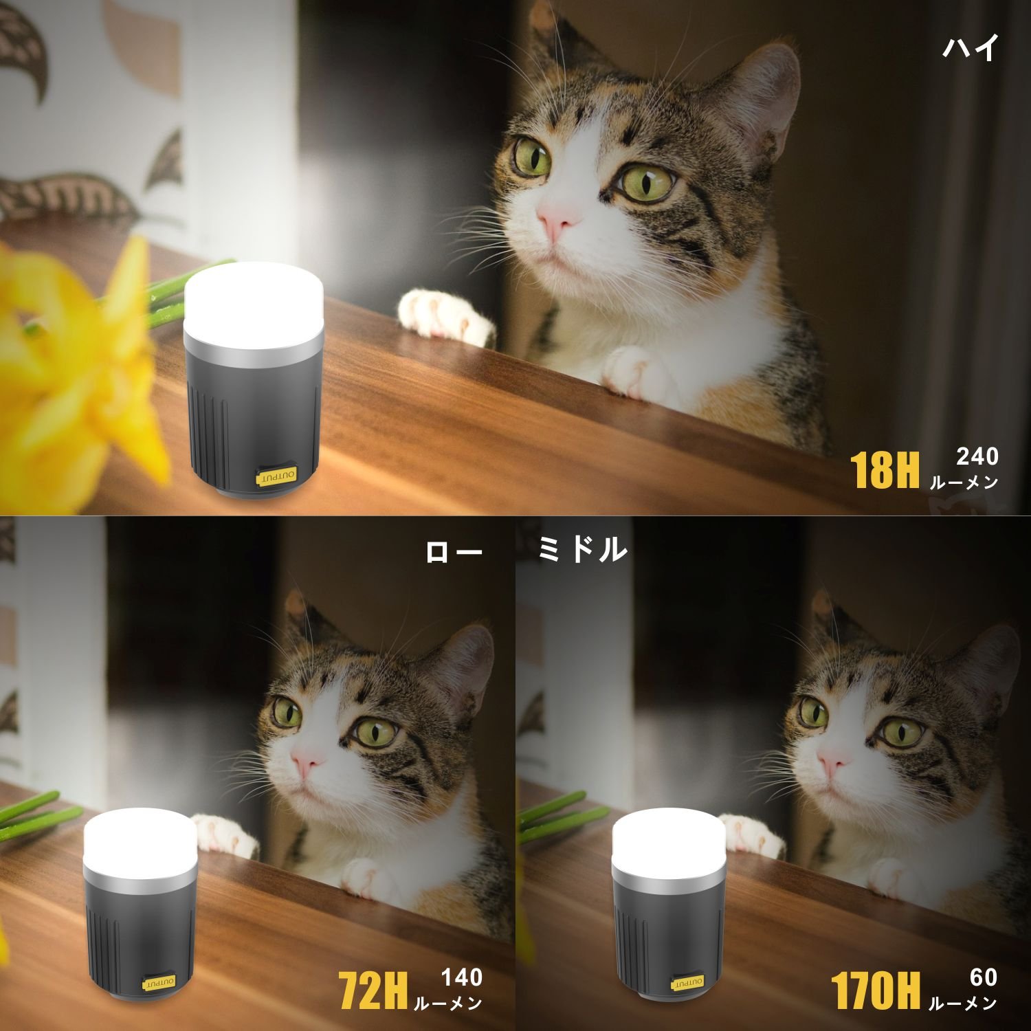 60 lumens continuous lighting 170 hours "Low mode"