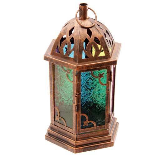 -. Title : Moroccan Style Metal Lantern with Coloured Glass