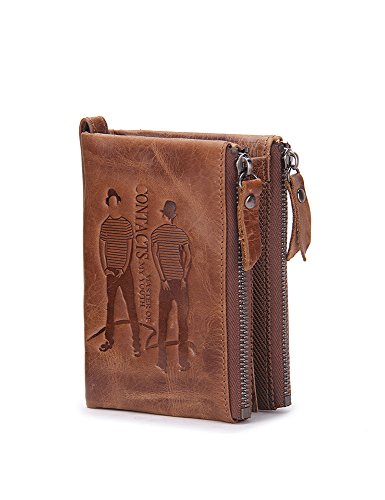-. Feature : 100% COWHIDE LEATHER WALLET -- Oil wax leather is old fashion and vintage. A brand new oil wax wallet could look old and torn, which makes it a perfect leather style for those who miss the good old days. / DOUBLE ZIPPER CREATIVE DESIGH -- Double zipper independent pocket,according to your needs convenience storage classification,fashion,clean and tidy. / FUCTIONAL CAPACITY -- 2 note compartment,6 card holder,1 photo holder,2 coin pocket,1 outside pocket for keys changes or other little things.And you can use it in any occasion such as casual,school day,business and so on. / HIGH QUALITY COIN PORKET -- Metal zipper,rigorous testing procedures,fine workmanship and smooth wearable.Coin is portable,easy carry and storage. / EXQUISITE HIGH QUALITY IRONWARE -- using high quality ironware to create fine,depth of grinding,polishing,vacuum plating to avoid getting rusty.