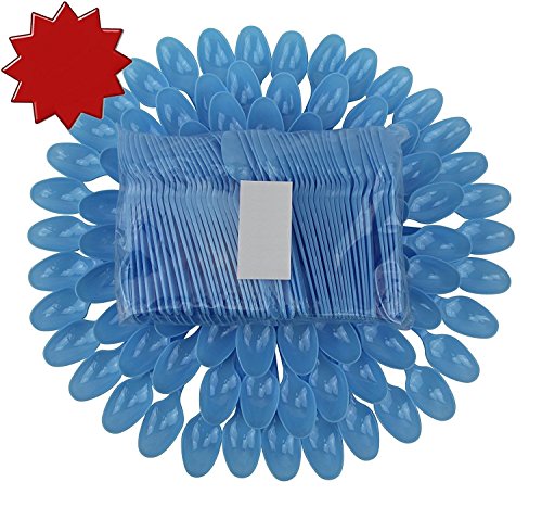 B-Kind Party Pack 100 Count Cutlery Thick Strong and Durable Heavy Weight Disposable Blue Spoons for Camping, Picnics, Parties, and Weddings