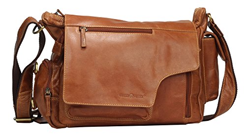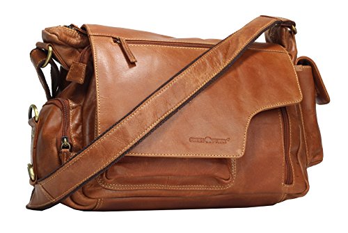 Greenburry Expedition Leder-Handtasche Ledertasche Umhangetasche - Echt Leder-Uberschlagtasche - 39x28x13cm