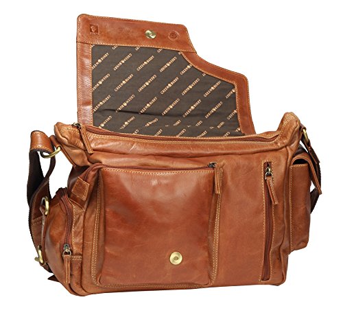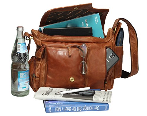 GROSSE ANPASSBAR - Der Leder-Schultergurt des Messengerbag ist stufenlos verstellbar und somit ideal an Ihre Korpergrosse anpassbar.