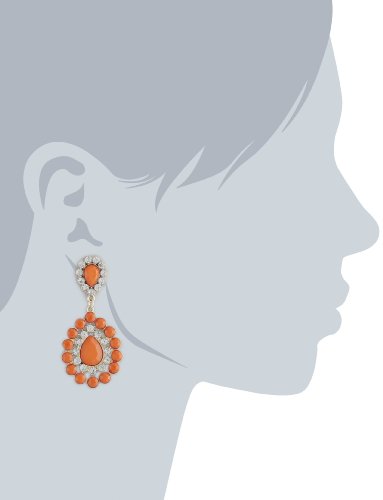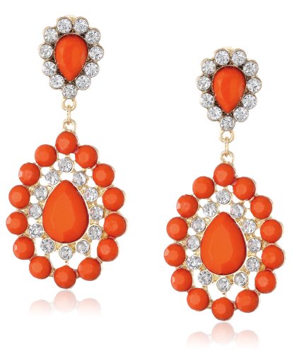 Orange and Crystal Tear Drop Statement Gold Tone Earrings