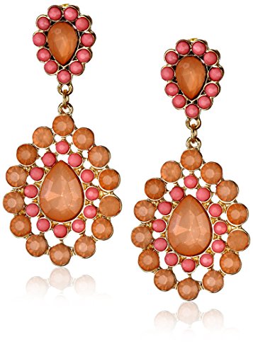 Tonal Pink Tear Drop Statement Gold Tone Earrings