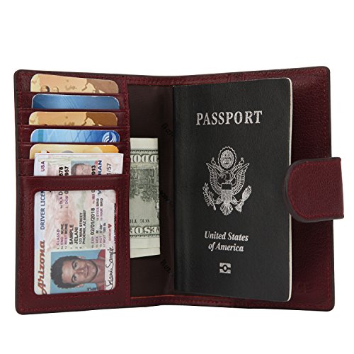 -. Feature : Top grains cowhides leather / Measure: 5.5*4.2*0.4 inches / 5 card slots / 2 slots for passport or passenger ticket / holds one passport (Fits ISO7810 ID-3 size passport including US, Canada, UK, etc.)