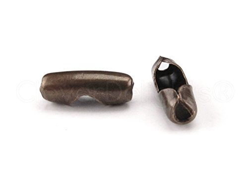 CleverDelights Ball Chain Connector Clasps - 100 Pieces - For 2.4mm Ball Chains - Antique Copper Color