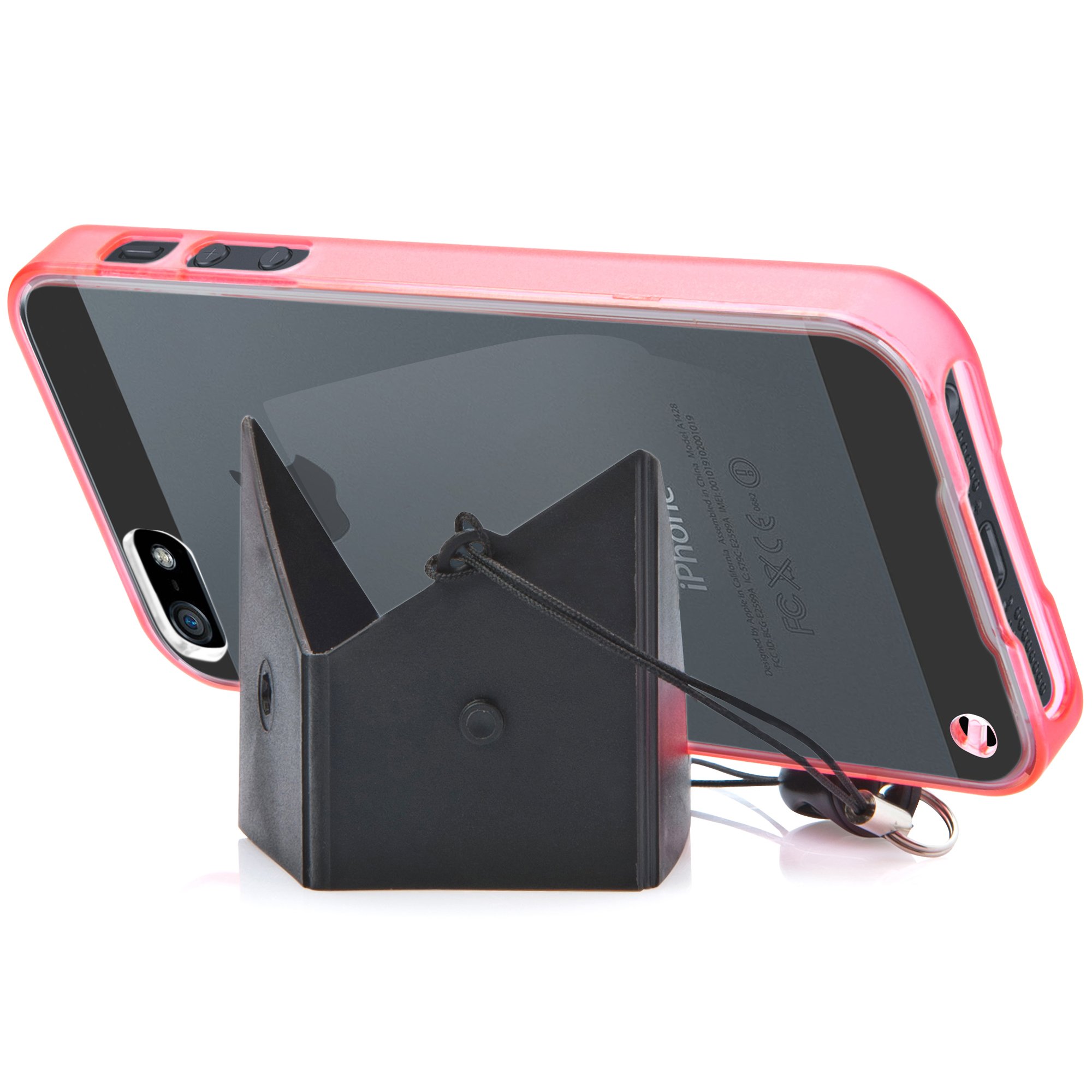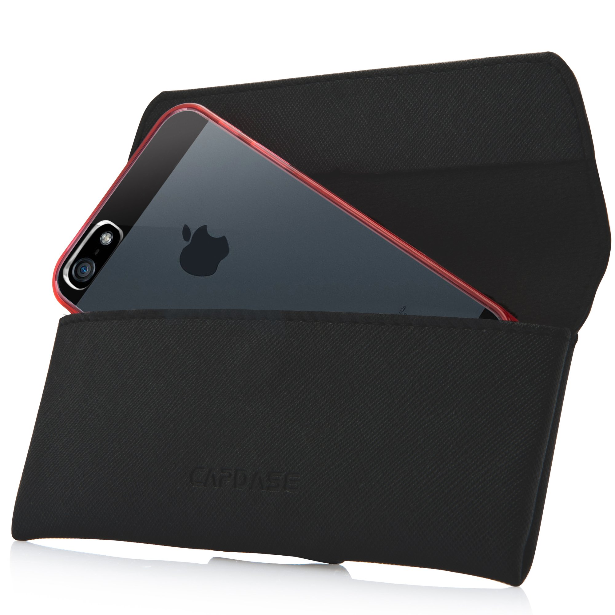 Protective pouch that is convenient for carrying iPhone 5 with case attached is also included.