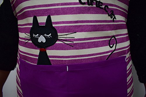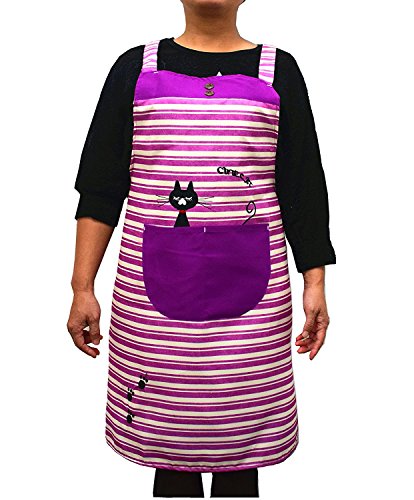 Ulove Prs Women's Apron Stripe Embroidery Waterproof Kitchen And Cooking Apron Bib (Purple)