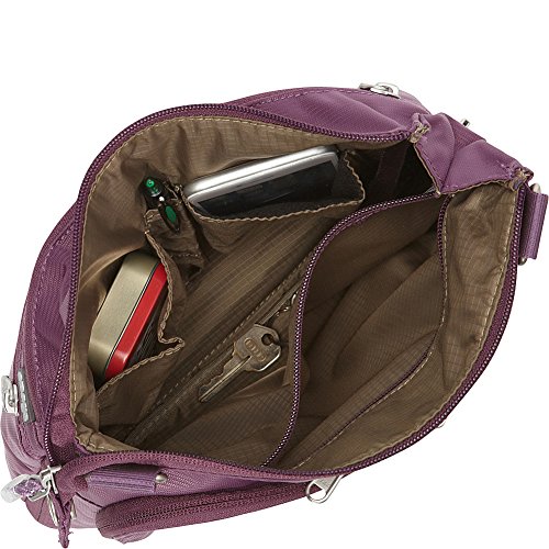 Two zippered front pockets, top-zip main and u-zip rear compartments