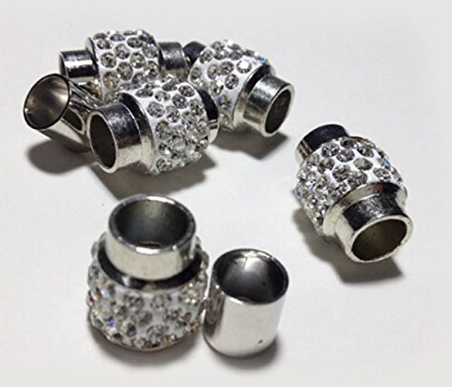 20pcs Leather Rope End Cap Magnetic Clasp with Crystal Pave, Hole: 7mm