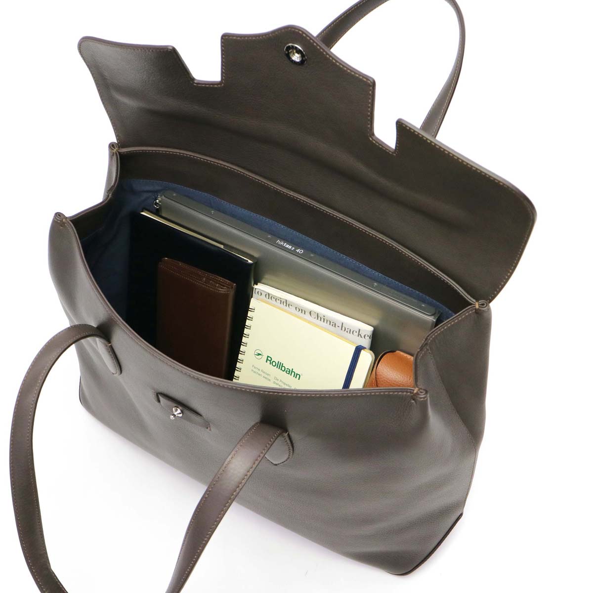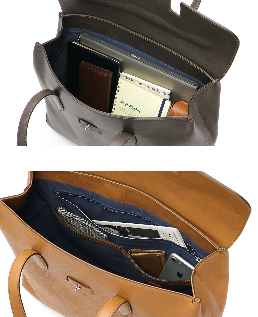 The storage space corresponds to A4 size, the size feeling that can store the documents and files clearly. It is attractive to use conveniently not only for everyday use but also for business scenes. On the inside, convenient pocket for organizing luggage is substantial.