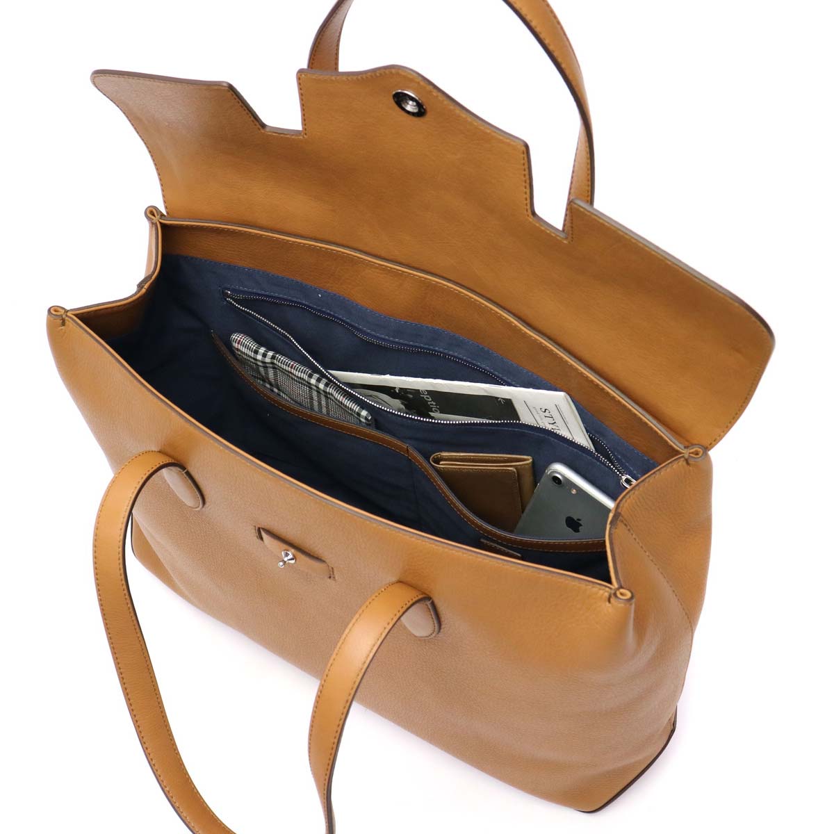 Using leather charm with softness and elegant look, leather tote bag pointed design is a point. You can use it in a wide range of scenes with an elegant appearance that matches casual as well as business.