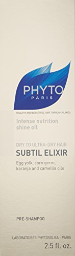 -. Feature : Subtil elixir intense nutrition shine oil was launched by the design house of Phyto / It is recommended for daily use; Please store in a cool dry place / 2.5 ounce oil