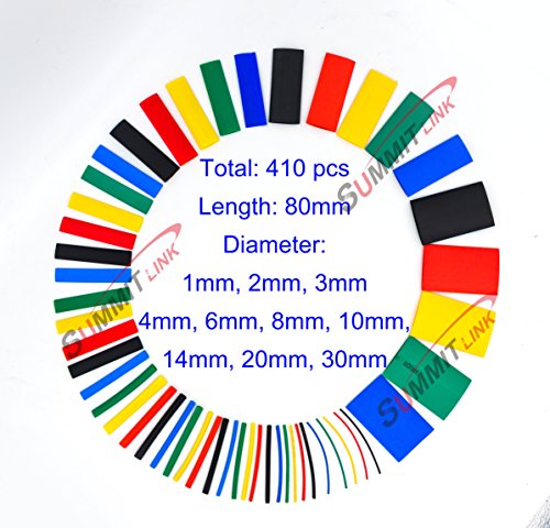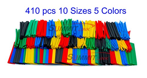 SummitLink 410 Pcs Assorted Heat Shrink Tubing Wrap Sleeve Set Combo Tube 5 Colors 10 Sizes