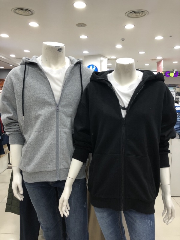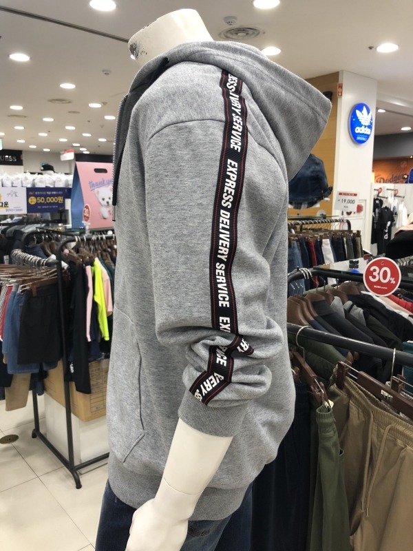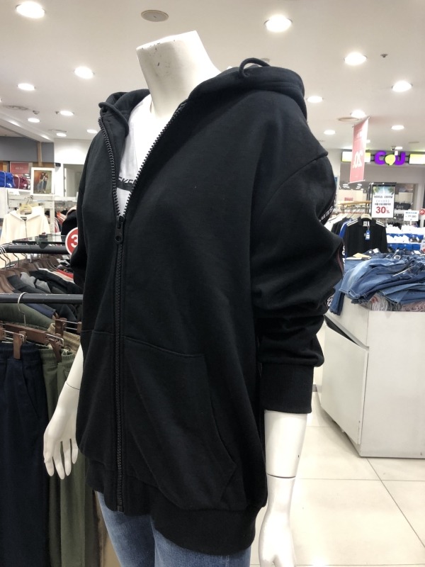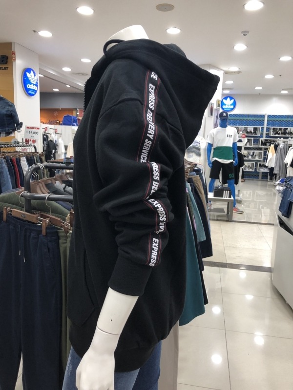 유니)소매그래픽테이핑 쭈리 후드집업