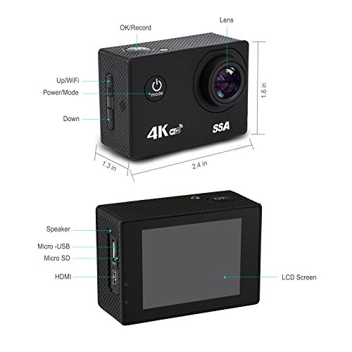 SSA 4K WIFI Sports Action Camera Ultra HD Waterproof DV Camcorder 12MP 170 Degree Wide Angle Include Waterproof Case,2pcs Batteries and Full Accesspries Kits