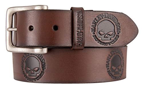 Studio : Lodis Publisher : Lodis Binding : Apparel Product Description Harley-Davidson® Men's Willie's World Belt, HDMBT11333-BRN. Not an inch of faux leather on this belt! Made of high-quality brown Genuine leather with a smooth texture. Decked out with famous embossed Willie G Skull logos. Interchangeable buckle gives you the flexibility to swap for another Harley-Davidson® belt buckle depending on your mood that day. Standard width: 1.5". Nickle finish buckle. Excellent quality leather belt, made for those bikers who want the best of everything! HDMBT11333-BRN 0