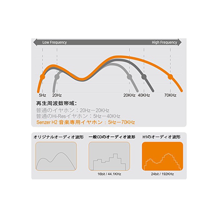 【Hi-Res음질 대응밸런스가 떨어진 음질】Senzer H2는 인간의 귀와(진동 공간)기술을 철저하게 연구 한 결과 태어난 45°각도 부착 튜브 헤드폰.모든 귀에 자연스럽고 쾌적하게 피트 합니다.듀얼 에어 chamber(진동 공간)기술 특허에 정확한 사운드를 고막과 다이렉트로 물려주는 것(일)에 의해일그러짐이 없는 사운드를 실현 합니다.고해상도로 저음역,중 음역,고음역 모두 클리어에 청목소리,보컬이 선명하게 청목소리,섬세한 음을 주워 주는 때문에,거의 어떤 장르에서도 깜짝 할 정도로(수록) 솔직하게 원음을 재현해 줍니다.넓은 주파수대역에 사운드를 재현 성과,음질이 명료 또한 저음도 결코 가라앉는 일 없이 꼭 죄어질 음에 충분히 나와 주고, 매우 밸런스가 좋은 이어폰입니다.