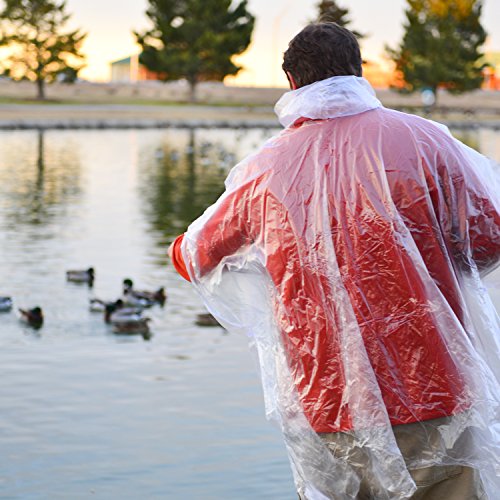 - COMPACT AND LIGHT – This water poncho is easy to keep on hand in your glove compartment, purse, backpack or even your pocket.