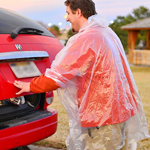 - ALWAYS BE PREPARED – Soggy clothes and wet hair are the worst! Keep dry with this emergency rain poncho.