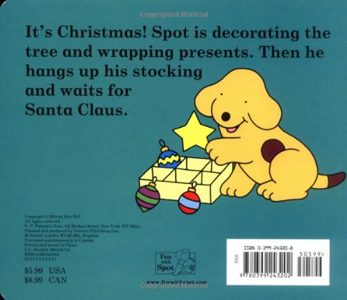 The Christmas season is a very busy time, and Spot knows that as well as anyone else. Everyone in Spot's house has something to do: there's the tree to put up and decorate, presents to make and wrap, and Mom needs Spot's help in the kitchen. Spot is so excited, keeping a sharp eye out for any flying reindeer, he almost forgets to leave milk and cookies for Santa!