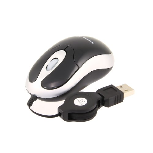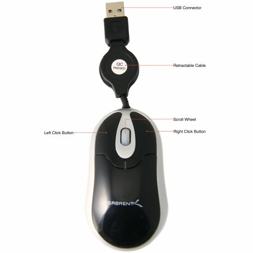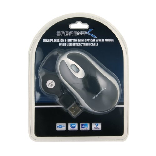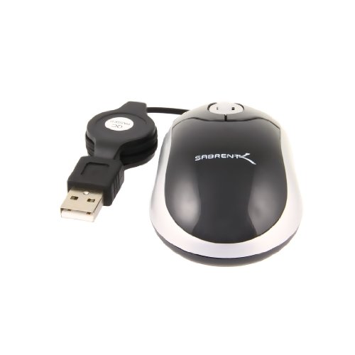 Sabrent Mini High Precision 3-Button USB Optical Scroll Wheel Mouse with Retractable Cable (MS-U3266)