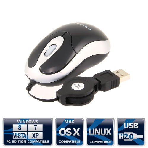 The Sabrent Mini MS-U3266 High Precision 3-Button USB Optical Mouse is ideal for users who require accurate and responsive navigation. Its 800 dpi resolution offers twice the precision of a regular mouse, making it indispensable for video editors, gamers and graphics and web designers. The retractable cable mouse is compact so you can carry it in laptop carry-bags with ease. It works on most non-transparent surfaces, and requires lesser space to deliver excellent performance. Further, the lightweight mouse also helps avoid cluttering your workspace. Also, it features an ergonomic design that allows for a fatigue-free experience even through long sessions.