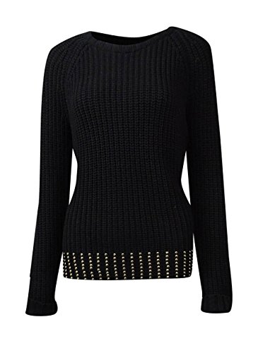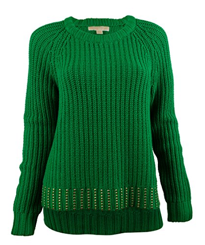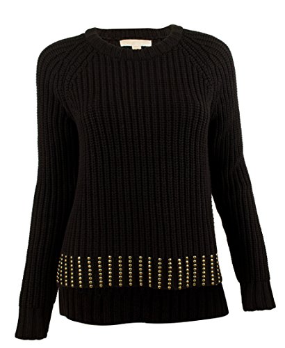 Michael Kors Women's Stud-Trim Crew-Neck Sweater; Crewneck; Long sleeves; Rubbed, thick knit style; Beaded hem accents; Cotton/acrylic.