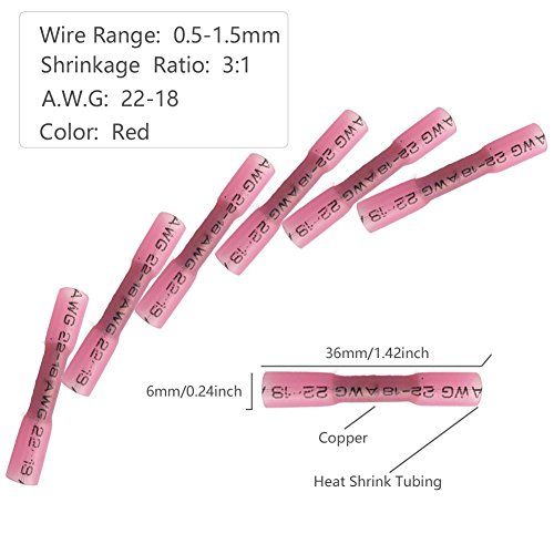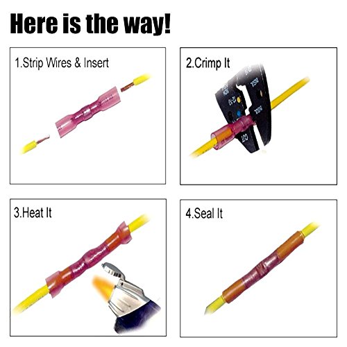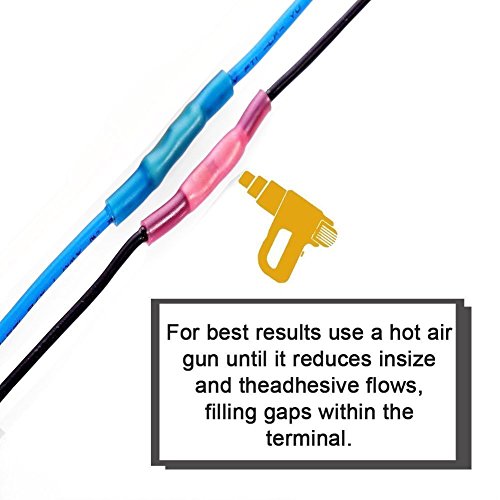 - 【No Slip Wire Contact】- Thick barrel ensures strong secure crimping every time to prevent wire failure, increase current flow, decrease voltage drop, and reduce equipment downtime. When heat is applied, polyolefin tubing reduces in size and the adhesive flows inside the insulation filling gaps within the terminal.