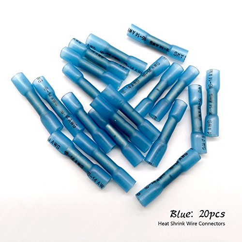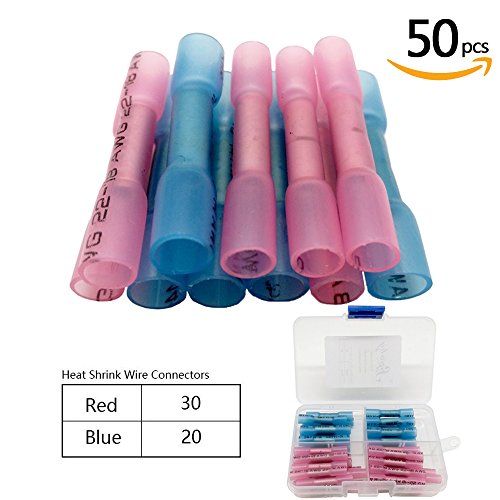 50pcs Heat Shrink Butt Connectors, Sopoby Waterproof Wire Connectors Insulated Crimp Electrical Terminals Marine Automotive (30Red 20Blue)