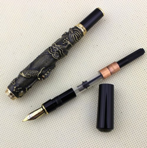 - Title : Luxury Fountain Pen Jinhao Chinese Dragon / Loong Bronze Basso-relievo Medium Nib