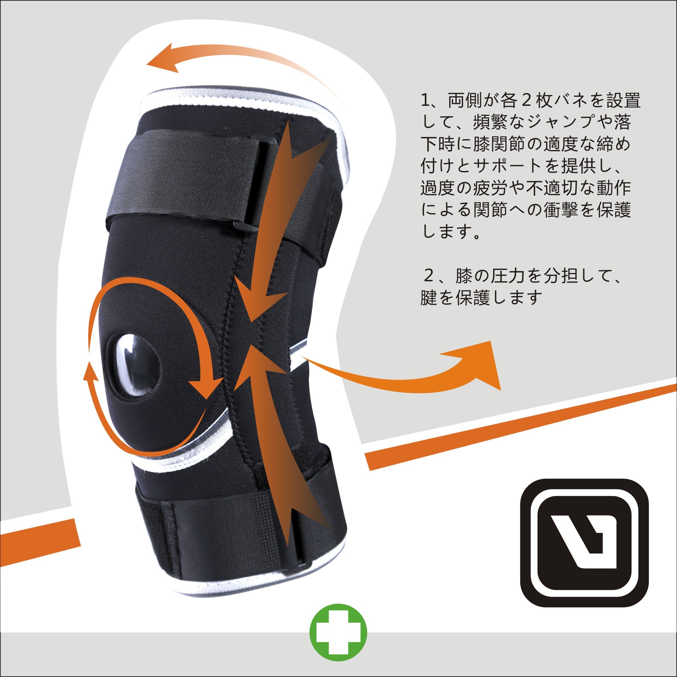 The four flexing elastic mat springs can properly fix the knee joint and support falling during excessive jumping and can cushion the impact on joints due to excessive fatigue or inappropriate movement.