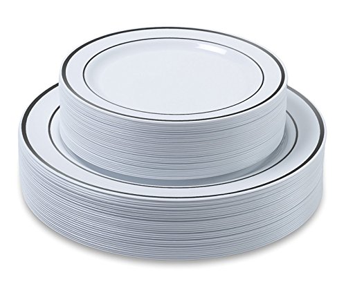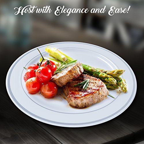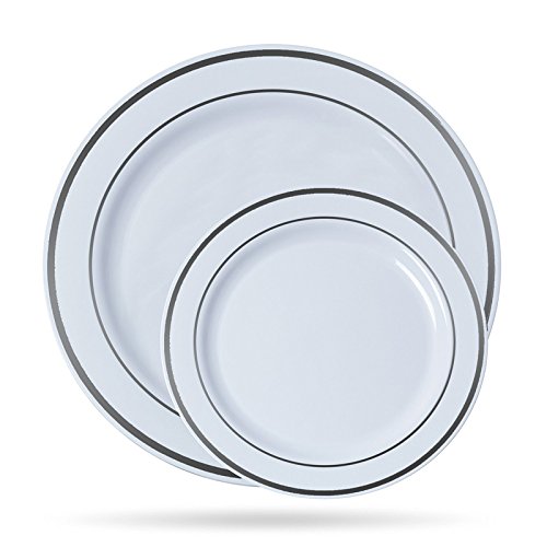 COMPLEMENT ANY DECOR: These clean white plates with silver rim accents match beautifully with silverware and glassware, perfect for holidays, Match with white, gold, silver or any color cutlery.