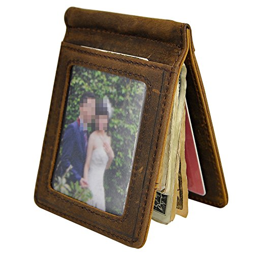 -. Feature : Product NO: W1015 / Material: Genuine leather / Size: L11.4cm×W1cm×H8cm (4.48"×0.39"×3.14") Weight: about 0.06kg / Structure: This magnetic money clip has 6 card slots and one ID window. This wallet is slim and thin, Perfect Front Pocket wallet to carry some money and a few cards. / Please be noted: This kind of leather looks worn, used, vintage and easy to get scratches..This is genuine leather products, it usually come with the leather smell and it'll fade out as time going, please understand, thanks.