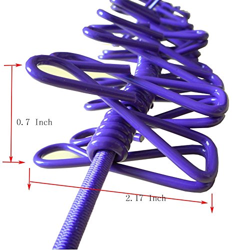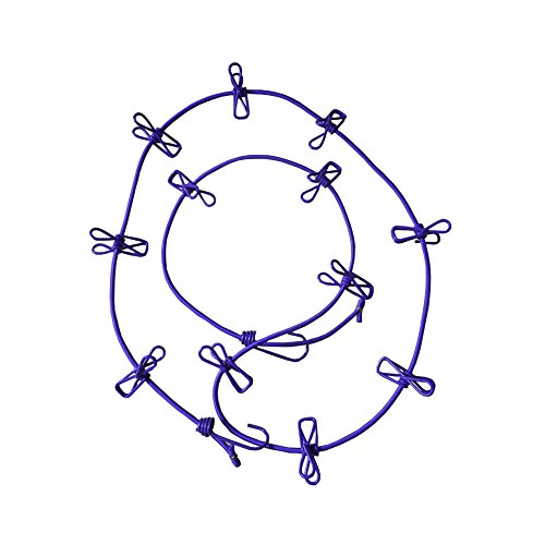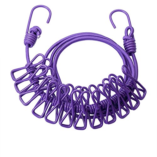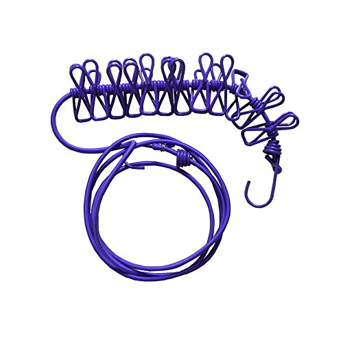 Eightnoo Portable Travel Home Outdoor Windproof Clothesline with 12 Pcs Stainless Steel Clips for hanging light clothes and photo displaying (Purple)