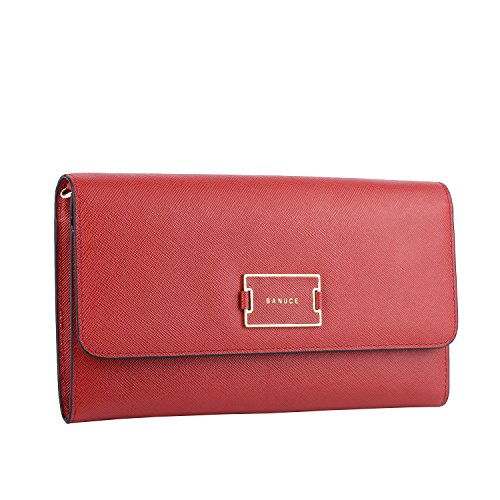 At BANUCE we specialize in top grade leather briefcase, leather handbags, leather wallets and accessories. We pay great attention to leather, function, quality and durability. And hand craft our leather bags using nutural leather to create sophisticated leather bags that will last a lifetime. Material: This wallet made of cowhide leather, contton poly lining and high quality hardware. Dimension: 8.25 x 0.7 x 5 inch 22 x 2 x 13 cm Color: Red / Black Net Weight: 0.3 kg Main feature: Additional detachable and ajustable shoulder strap for shoulder and crossbody wear. Large capacity due to its 8 card slots, 3 full-length compartments, and a zippered pocket.Keep your credit cards, cash, receipts, cheekbook and your cellphone well constructed. Structure: Main pocket closure with magnet clasp. 8 x card slots. 3 x full-length compartments. 1 x zippered pocket Additional detachable and ajustable shoulder strap. Function: Adaptable for credit cards,cash,receipts,cheekbook and your cell phone. Simple and decent design,perfect to match with a variety styles of clothes,dressing up for any occasion. 0